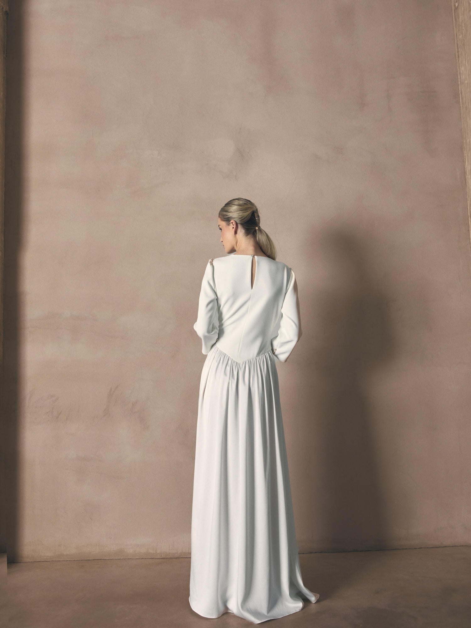 VESTIDO MANGAS ABULLONADAS COLA
